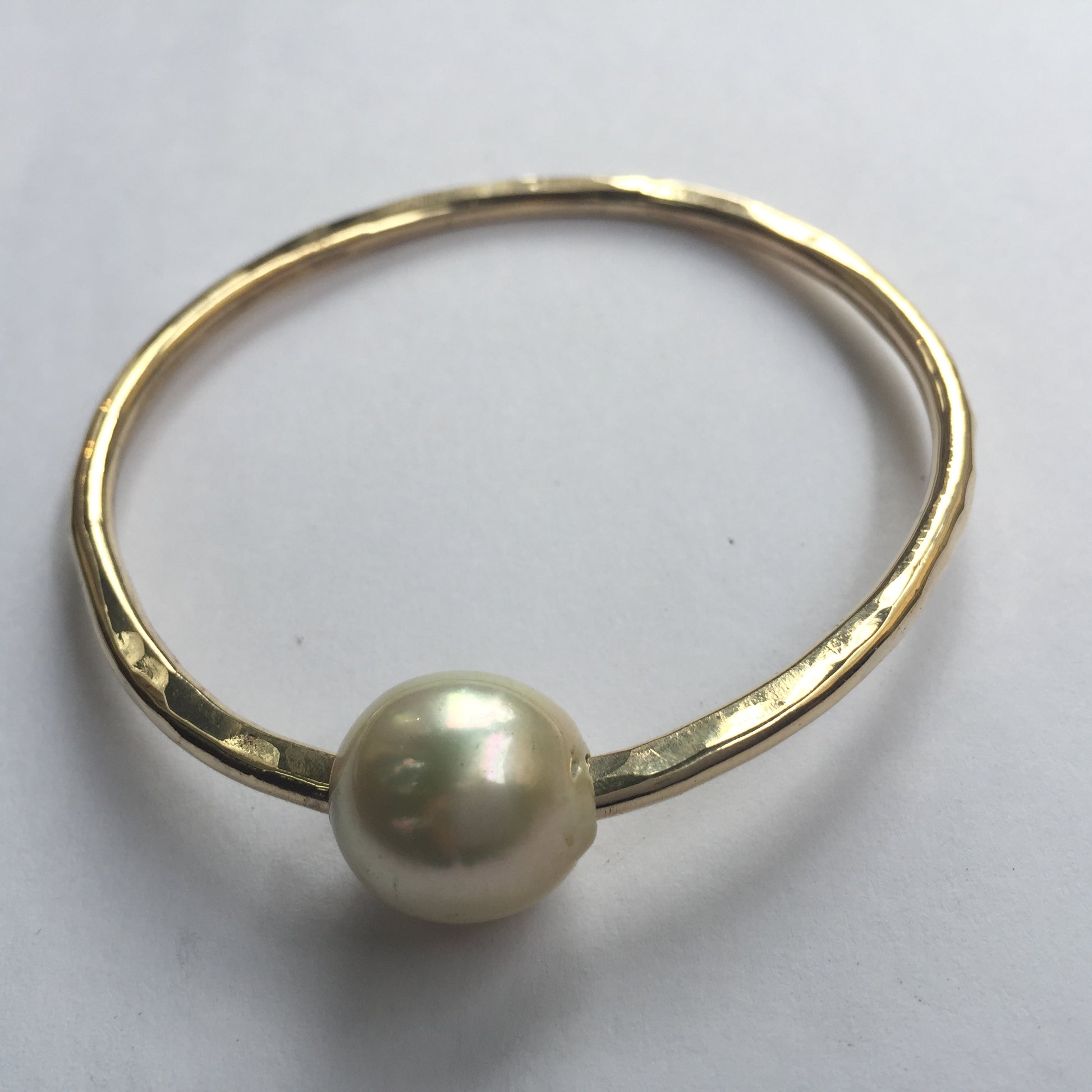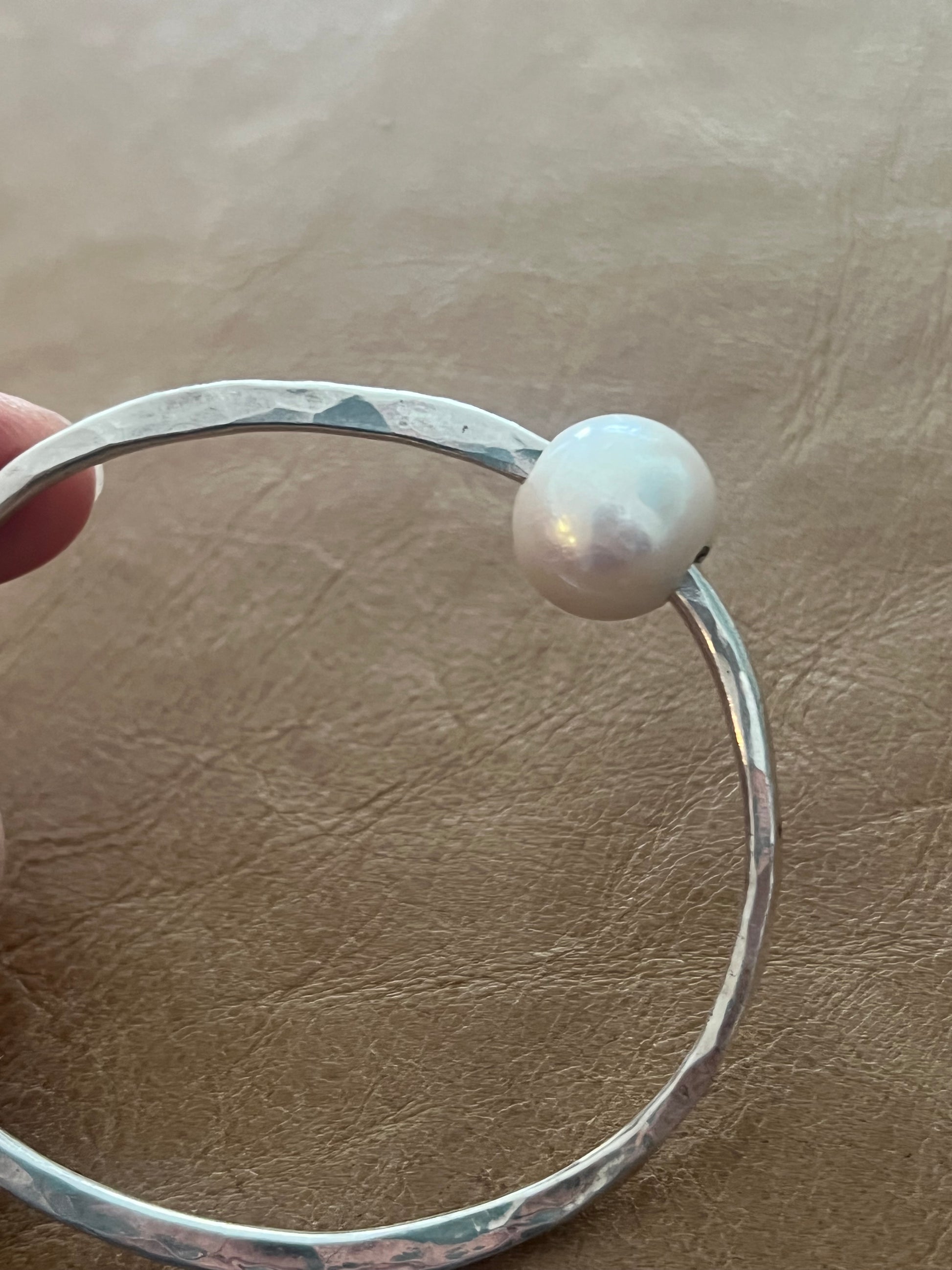 Hammered fine silver, gold-filled, or 18kt with a 13mm-15mm AAAA natural pearl.